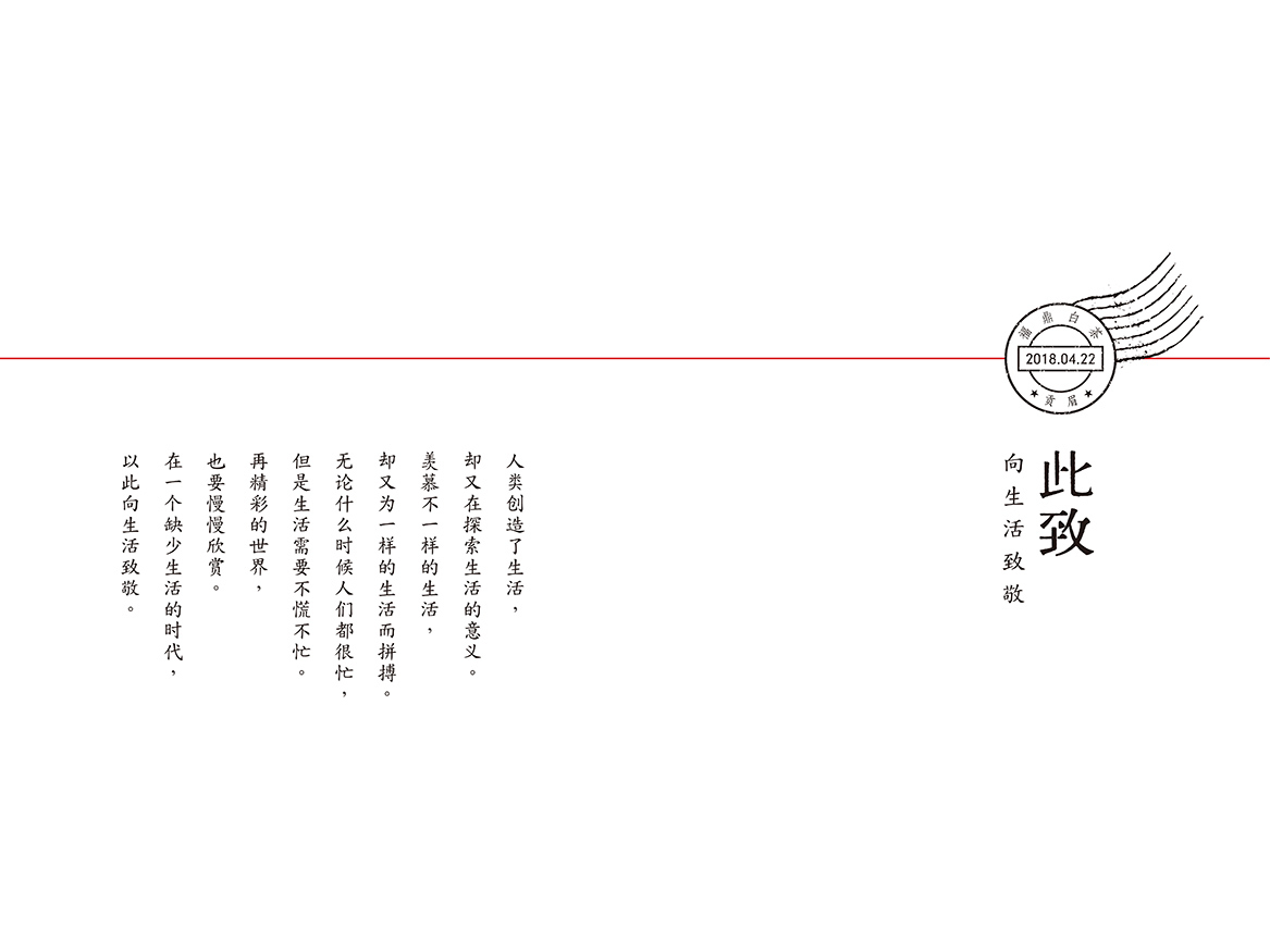 【此致】品牌最直接的聯(lián)想:書信,所以我們的創(chuàng)作就以從前書信的形式展開。從前“書信”是一種向特定對象傳遞信息、交流思想感情的方式,通過“書信”的形式不僅可以傳達品牌的思想感情,而且能給人以“見字如面”的親切感,喚醒我們每一個人對過去最美好的回憶,相比現(xiàn)代的數(shù)字化電子化更有溫度。并且“書信”這種形式高度契合木心先生的《從前慢》:“從前的日色變得慢,車、馬、[郵件]都慢,一生只夠愛一個人。”非常之美,意象中透著“從前”詞與物的美,與一個愈來愈快的對世界的感受相比,從前的慢直接轉(zhuǎn)化成一種美,一種好,一種樸素的精致,一種生命的哲學。創(chuàng)作形式融合了品牌概念并賦予品牌以靈魂。