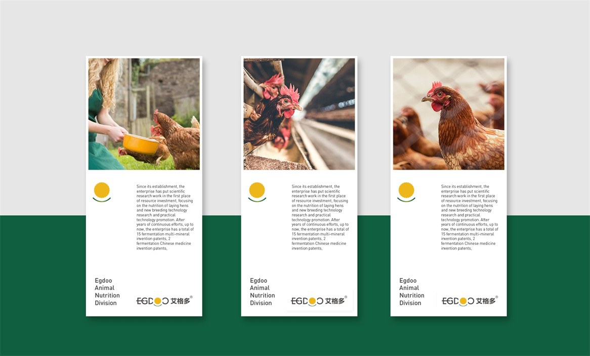 艾格多-專業功能性蛋雞料品牌。自企業成立之初,該品牌就蘊涵了企業的使命和夢想,即專注于蛋雞產業,致力于提高蛋雞生產性能和養殖效益,這也是艾格多品牌的基因。品牌LOGO設計以“太陽花、蛋黃、笑臉”等為創意設計元素,表達了艾格多人像太陽花一樣陽光明媚、積極向上的精神以及艾格多品牌綠色健康的品牌核心理念,艾格多人以快樂的心態與微笑服務繁忙的農場,秉承“專注、極致、創新和愛”的品牌精神,永遠向著陽光成長,用心創造美好世界。