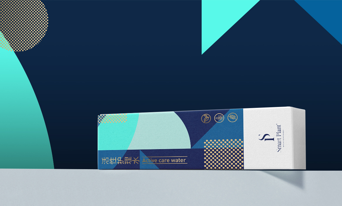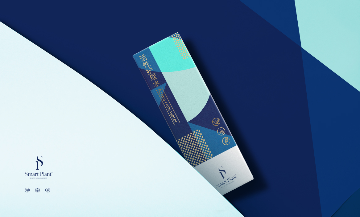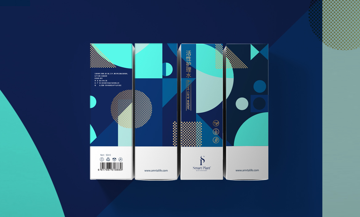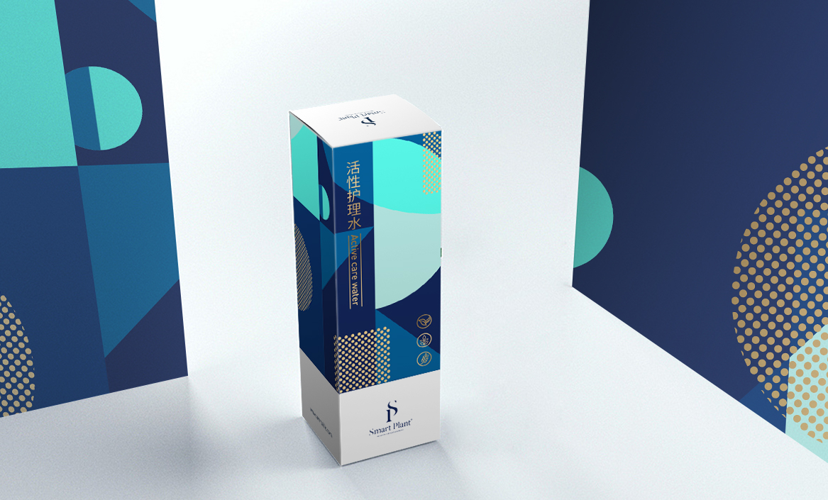 Smartplant是鄭州智慧藍(lán)生物科技有限公司旗下產(chǎn)品品牌,活性護(hù)理水是其中一款純天然植物提取的皮膚護(hù)理產(chǎn)品。此包裝風(fēng)格定位:時尚、典雅、藝術(shù)、活力。設(shè)計(jì)表達(dá)上采用的是一種抽象化幾何化的表達(dá)方式,用圓、方、三角等極簡的幾何圖形表達(dá)不同的生活元素和自然構(gòu)成,不同的藍(lán)色分別代表著藍(lán)天和大海,點(diǎn)狀代表活性水分子、新鮮的陽光和清新的空氣。包裝表達(dá)完整,體現(xiàn)定位,時尚亦不失活力。