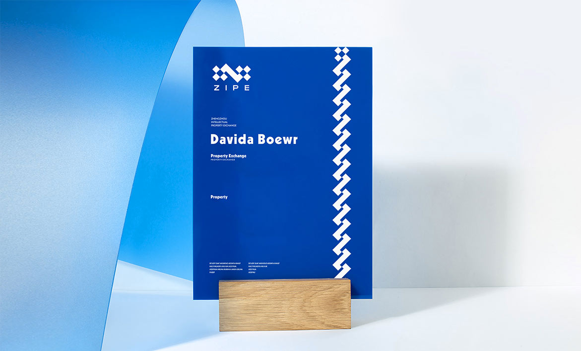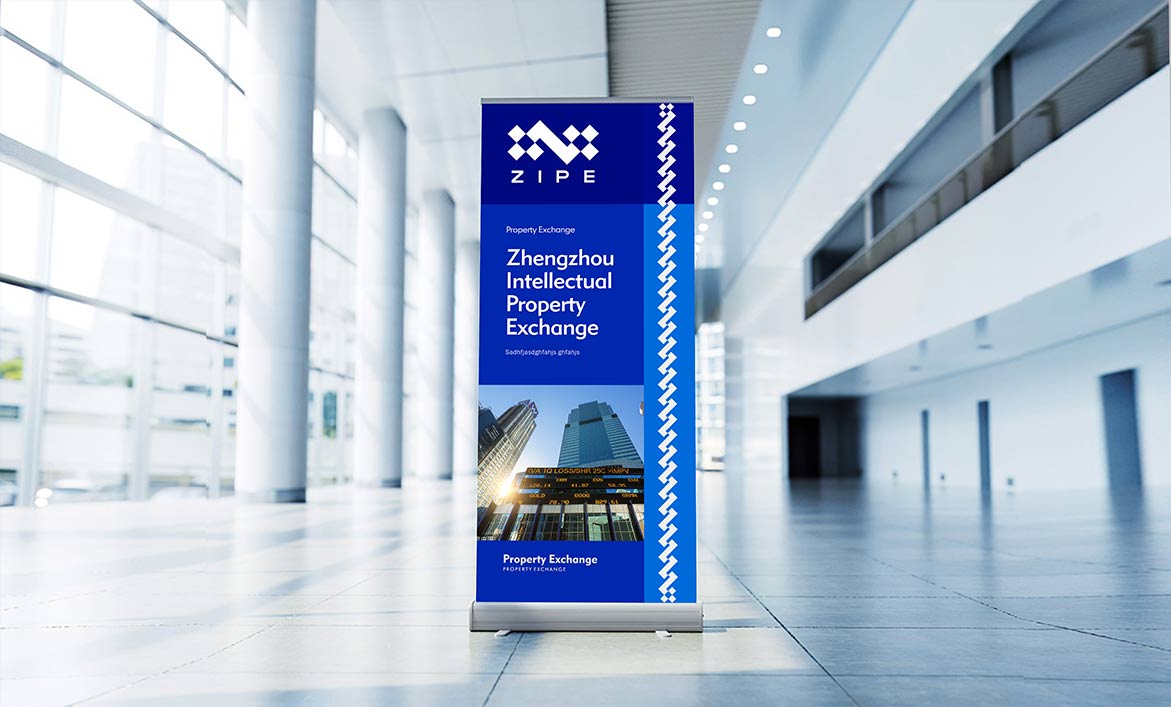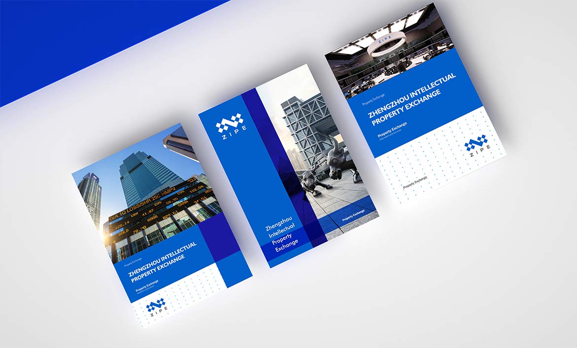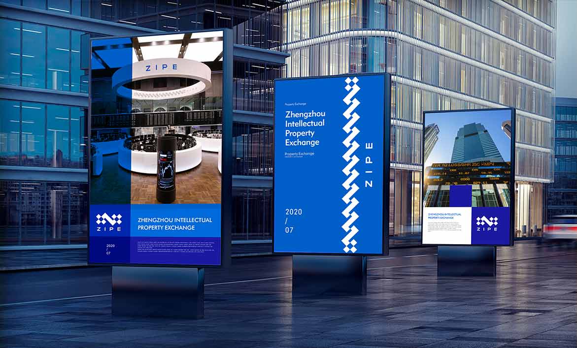 品牌形象設計從鄭州知識產權交易所的品牌名稱和行業屬性為原點提出概念并展開創作,突出平臺交易和連接的特征,以及鄭州知識產權交易所的兩大業務主體和六大業務模塊。一個個藍色方塊代表科技、知識、模塊,也是一個開放的智慧平臺空間,通過一個“Z”字形相連,也是鄭州知識產權交易所英文首字母和交易走勢k線圖,代表鄭州知識產權交易所知識產權交易和無限連接。