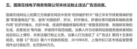 2019年12月12日,國美在線網站上的第三方商家在網店中發布宣傳有治療功效的普通食品違法廣告,國美在線未依法履行制止義務,被罰款66萬元。