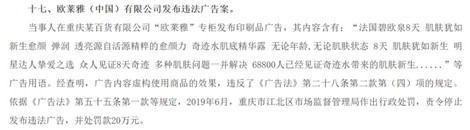 歐萊雅(中國)有限公司發布 “無論年齡、無論肌膚狀態,8天肌膚猶如新生”等虛構商品使用效果的虛假內容廣告,被罰款20萬元。