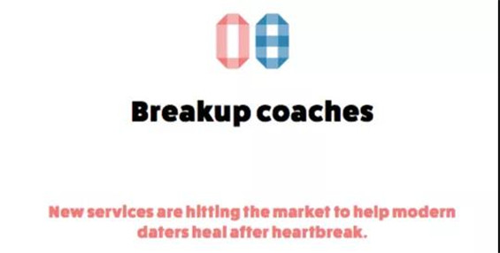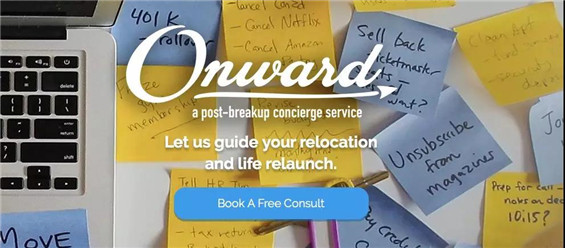 紐約的一站式分手管家服務(wù)Onward, “for moving out to moving on”, 幫助用戶從解決分手搬家問題到分手后心情問題。尤其對(duì)于在紐約這樣大城市打拼的男女,并不是所有人都有親友可以支持他們結(jié)束傷心的過程。如果結(jié)婚規(guī)劃師和離婚律師的需求這么大,為什么不能有分手管家和導(dǎo)師的服務(wù)呢?