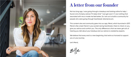 Mend也是美國一家一站式分手療愈創(chuàng)業(yè)公司,提供從在線咨詢指導(dǎo)到分手療愈旅行的服務(wù)。
