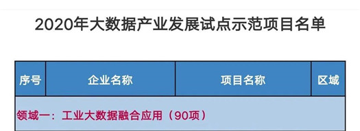 2020年大數據產業發展試點示范項目