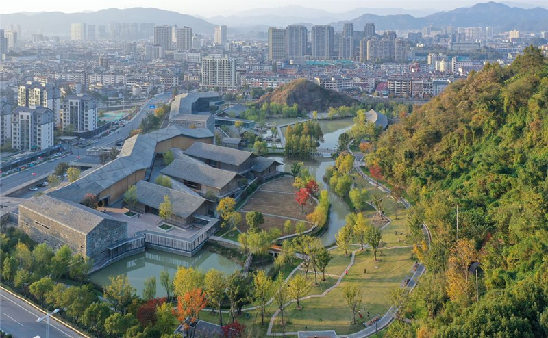 杭州臨安歷史博物館位于功臣山下,建筑與自然隱隱交融,磚瓦、夯土,曲面懸山屋頂、殿堂式結構,連綿起伏,錯落有致。(圖源:designmuseum)