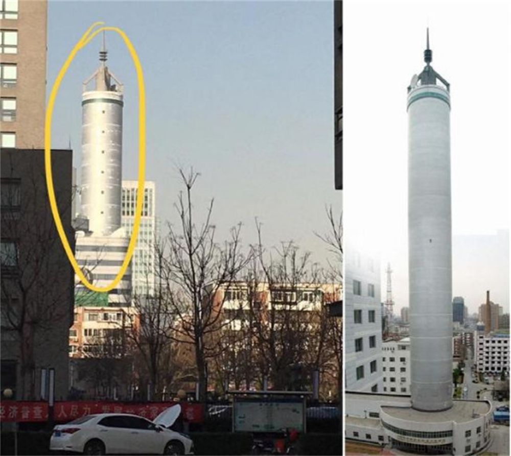 圖注:國(guó)家微重力實(shí)驗(yàn)室的落塔(喬輝2018年拍攝于北京希格瑪大廈北側(cè))。