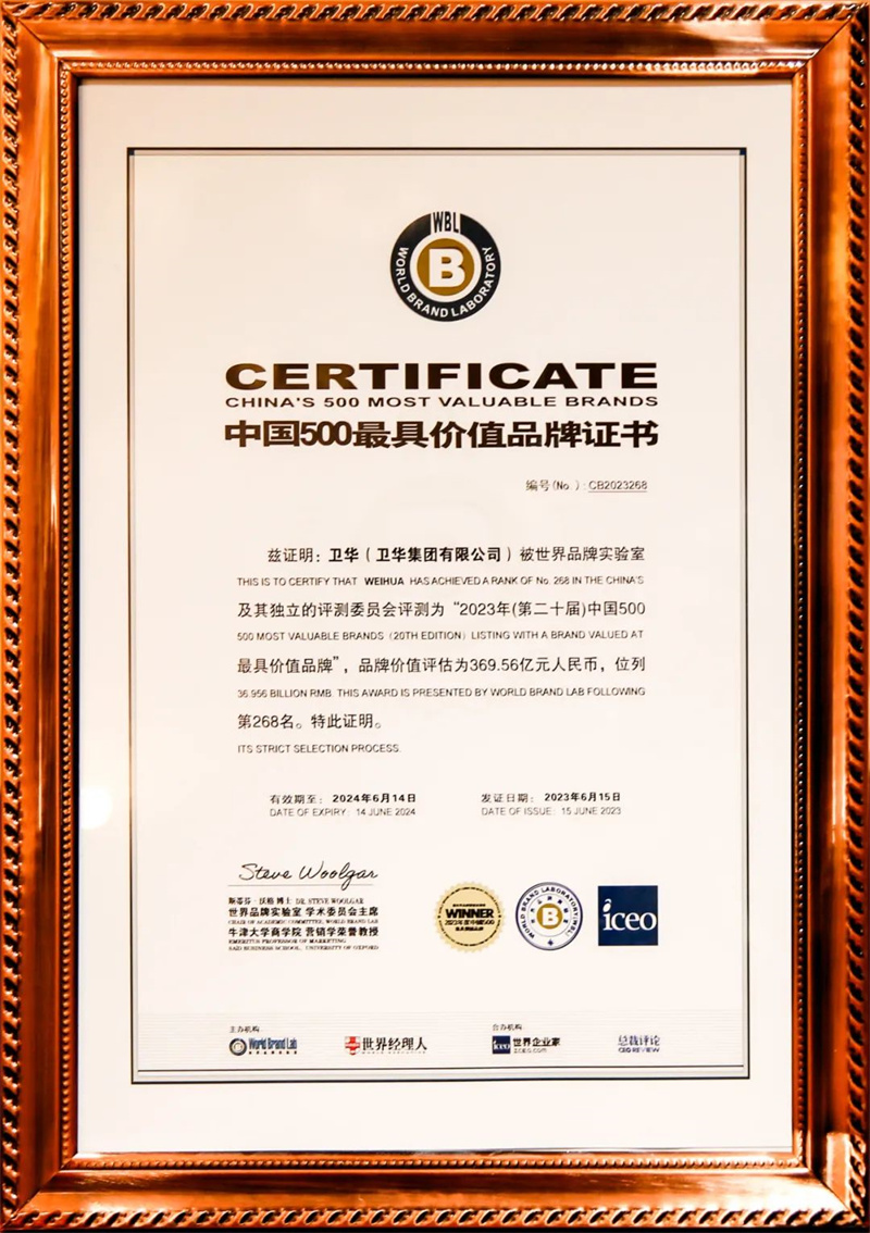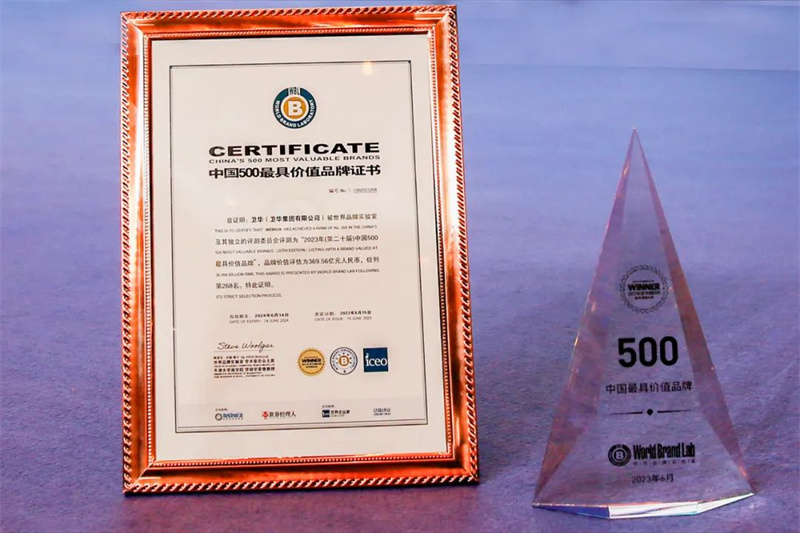 此次,衛(wèi)華榮登2023年中國(guó)500最具價(jià)值品牌榜單,獲得世界權(quán)威認(rèn)證,充分彰顯了衛(wèi)華非凡的企業(yè)實(shí)力和蓬勃向上的品牌影響力。