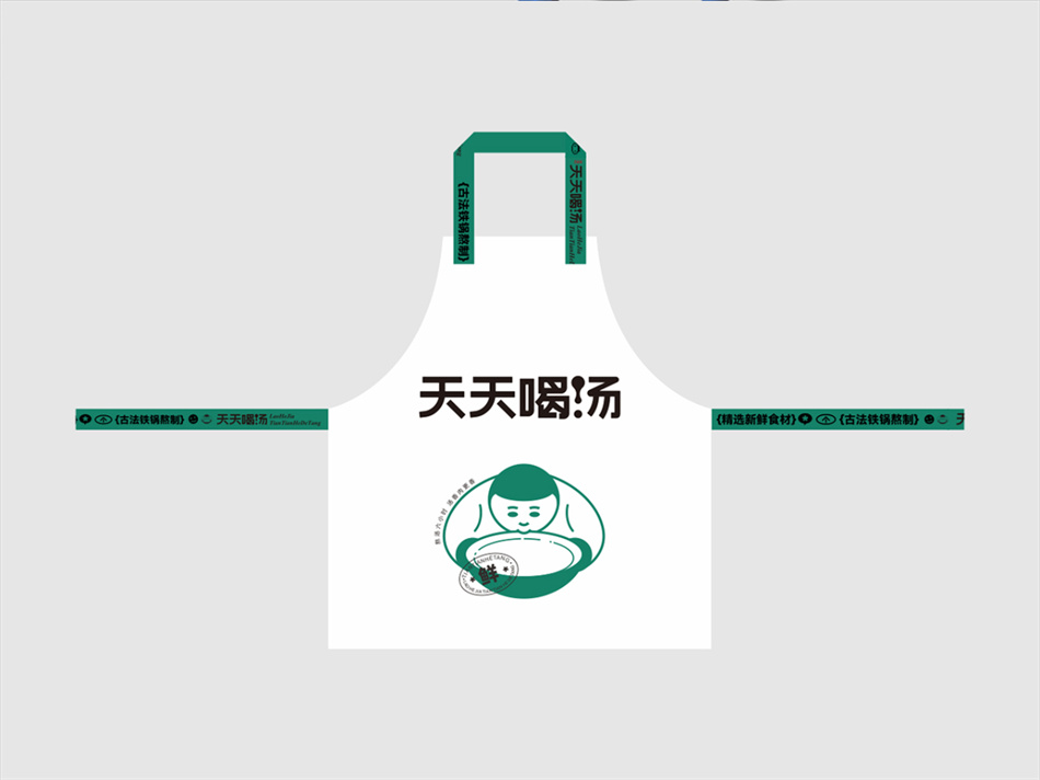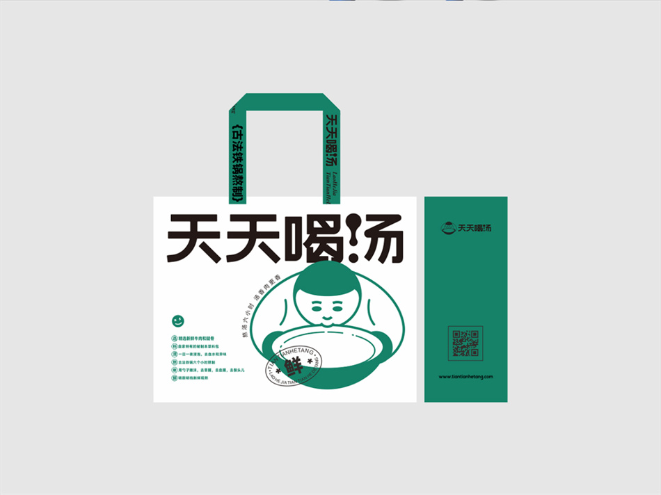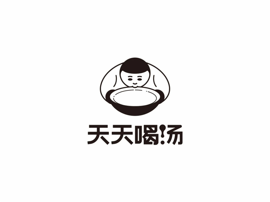 在洛陽,天天喝湯是一種日常,是洛陽人的生活方式,無論男女、老幼,不分階層、不分區域都喜歡喝湯,特別是牛肉湯,已成了洛陽湯的一種代表。對于天天喝湯的LOGO創作初衷,我們就是想把洛陽這種日常的生活方式用圖形化的形式形象的表達出來,形成一種可普遍識別的符號,一種無論老人、婦女、孩子,甚至大字不識一個的普通老百姓一眼都能識別的認知符號,所以我們創作了一個直觀有趣的天天喝湯形象。為了增加LOGO的識別性和記憶性,我們特別在局部運用了夸張的手法,特意把湯碗做了放大設計處理,讓喝湯的特征更加突出。為了增加LOGO的趣味性和豐富牛肉湯的營養價值內涵,我們特別繪制了一個胖嘟嘟的喝湯人物(天天)形象,正在端著大碗大口喝湯,看起來非常形象可愛,非常喜感,立刻有一種場景代入感,喚起我們喝湯的欲望和聯想。LOGO圖形整體圓潤、飽滿,人物刻畫簡潔、生動、形象,個性鮮明、敦厚可愛,具有普遍性、識別性和趣味性,豐富了天天喝湯的內涵,具有洛陽湯的代表意義。