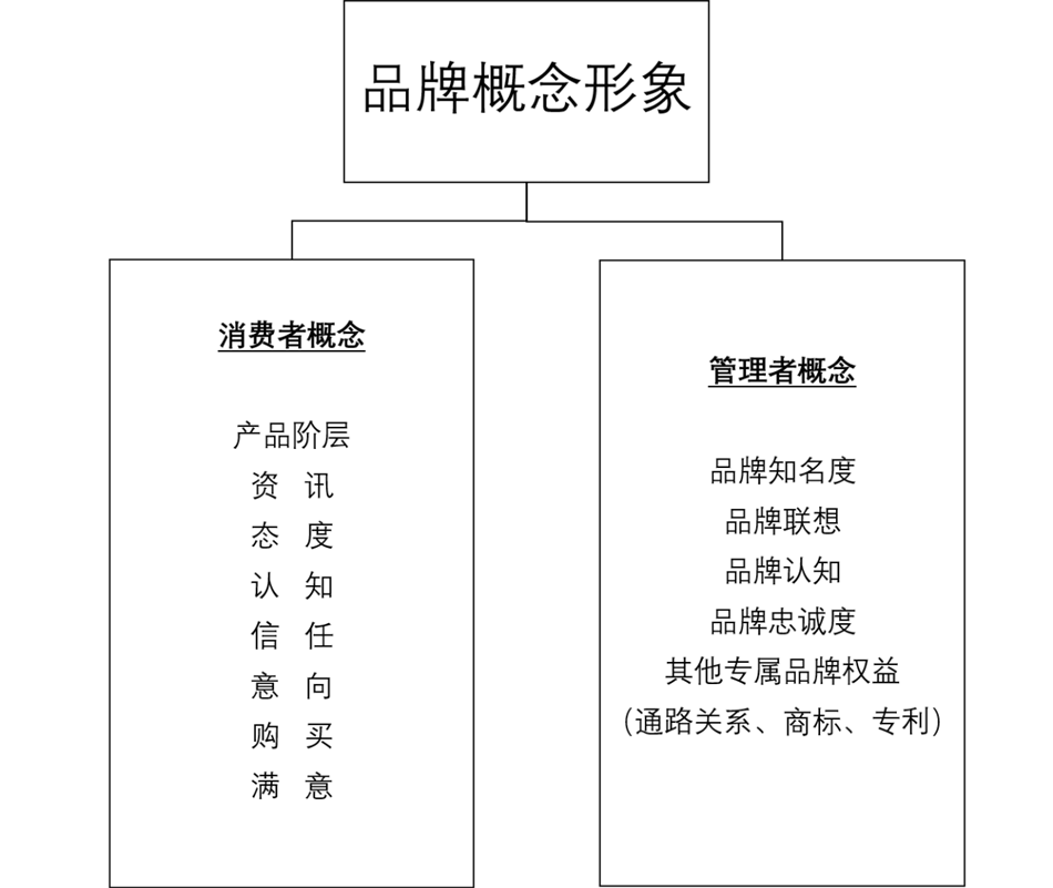 品牌概念管理,因不同的客群(消費(fèi)者或管理者),會(huì)產(chǎn)生不同的認(rèn)知及觀念。Howard認(rèn)為「品牌概念」在消費(fèi)者的影響層面有產(chǎn)品屬性﹑資訊﹑態(tài)度﹑認(rèn)知﹑信任﹑意向﹑購(gòu)買(mǎi)﹑滿(mǎn)意等八項(xiàng)意念﹔就管理者而言﹐品牌概念則有品牌知名度﹑品牌聯(lián)想﹑品牌認(rèn)知﹑品牌忠誠(chéng)度﹑其他專(zhuān)屬品牌資產(chǎn)(通路關(guān)系﹑商標(biāo)﹑專(zhuān)利)等五種意義。如圖所示: