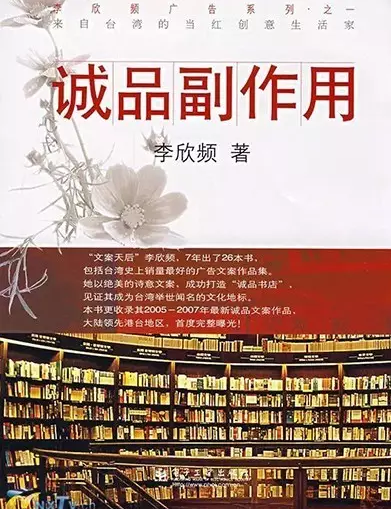 經過二十五年的用心經營,誠品現在已是一個華人文創品牌,不只是臺灣書店品牌。早在開業之初,誠品就意識到文案之于品牌的加持力量。《誠品副作用》和《廣告拜物教》,是誠品文案作品的多年結集,可以說,李欣頻與誠品,成就了彼此。