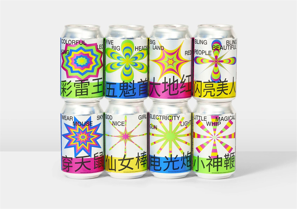 臨近圣誕,然后跨年,緊接著就是春節;鞭炮、紅包、年夜飯可是傳統三件套,雖然我們許久未聽到過它的聲音了,但對鞭炮煙花的記憶卻從未消失。仔細想想易拉罐啤酒包裝設計的形狀非常像以前的老式二踢腳,于是索性選擇了八個耳熟能詳且充滿趣味的名字,搭配八種爆炸圖形作為酒款的主視覺包裝設計,整體包裝設計也參考了以前的煙花禮盒,一箱八枚,每天一鞭,連放八天!穿天鼠、小神鞭、閃亮美人、彩雷王、五魁首、電光炮、大地紅、仙女棒,鞭鞭到肉!內里還有手持「仙女棒」,可以抽一根出來看看新年運勢如何。新年一年就要來了,好的不好的,都隨風去吧,開一罐兒精釀,為每個人的新年錦上添「禮花」。