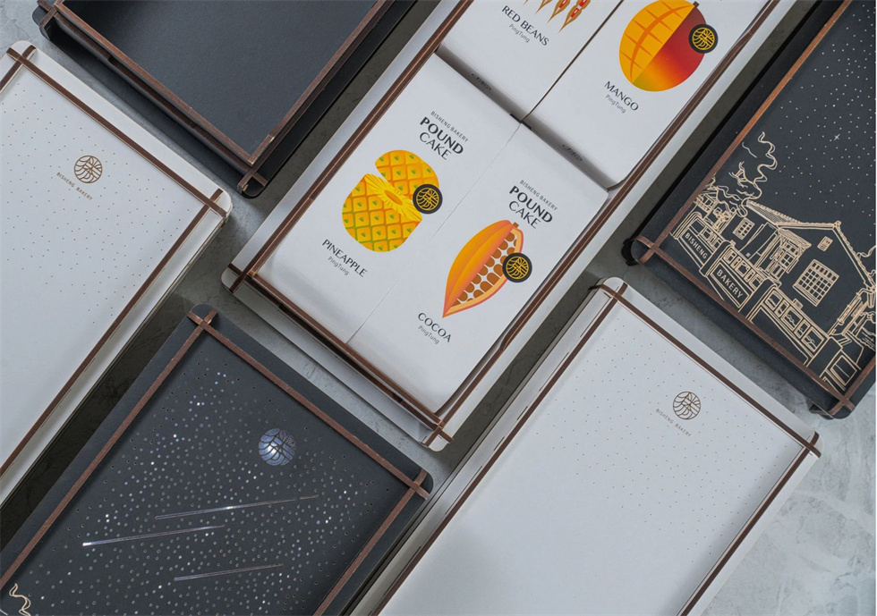 必勝烘焙制研所之磅蛋糕采用了屏東在地特色農(nóng)產(chǎn)品:鳳梨、紅豆、可可及芒果作為創(chuàng)新口味,除了推廣屏東農(nóng)特產(chǎn)之外,也為降低碳足跡盡一份心力。磅蛋糕包裝設(shè)計木盒之外觀視覺設(shè)計結(jié)合了店址所在地勝利星村的建筑特色,特殊的木盒結(jié)構(gòu)加入了傳統(tǒng)木建筑的力學(xué)概念,黑色木盒的特殊版本更加入了LED的星空來展現(xiàn)星光熠熠的效果。整個磅蛋糕包裝設(shè)計以四種農(nóng)產(chǎn)水果為表現(xiàn)主軸,以單純的插圖來呈現(xiàn)內(nèi)容物,讓消費者方便直觀購買。