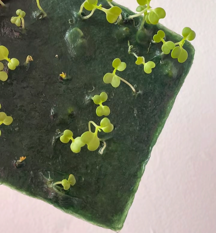 “咖啡渣變成紙,種子變成詩”,這是一款可以種植的日歷。一個月過完,在日歷紙上噴水,2—3天就會發出小芽。