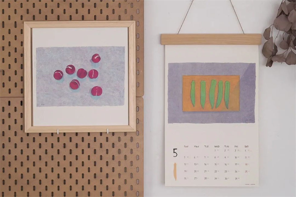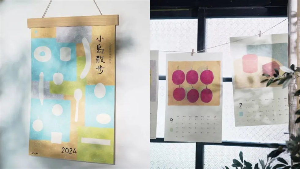 中國臺灣藝術家陳怡今從日常生活中常見的食材、物件中汲取設計靈感,以“小島的原味風景”為掛歷設計主題,結合每月的數字創作出12幅畫作,并制成了《小島散步》木框掛歷系列。