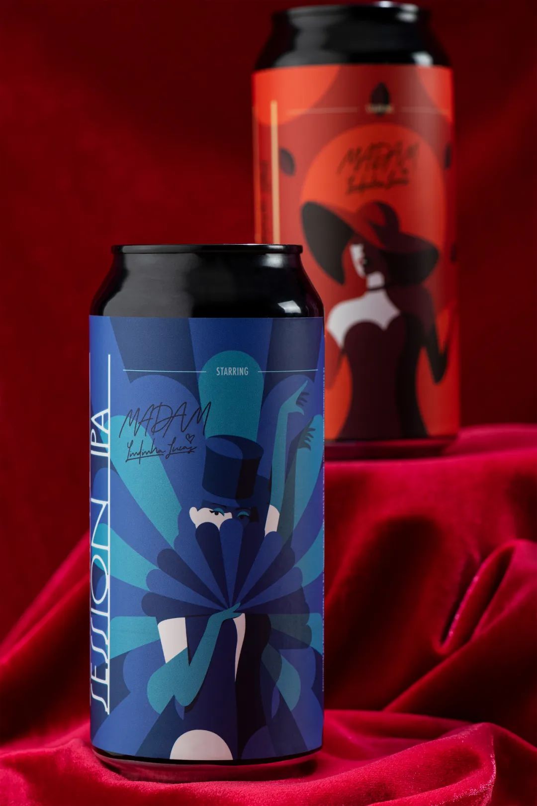 MADAM Lindinha Lucas啤酒品牌新標志是一位女士的親筆簽名,上面畫著一位抱著啤酒花的單線女士,概括了品牌的精髓。受演出門票的啟發,啤酒瓶標簽設計喚起表演氛圍,精心制作的副本和徑向圖形表明最終消費日期。藝術裝飾風格的自定義字體設計和干凈的插圖設計風格完善了身份,邀請消費者讓迷人的表演開始。