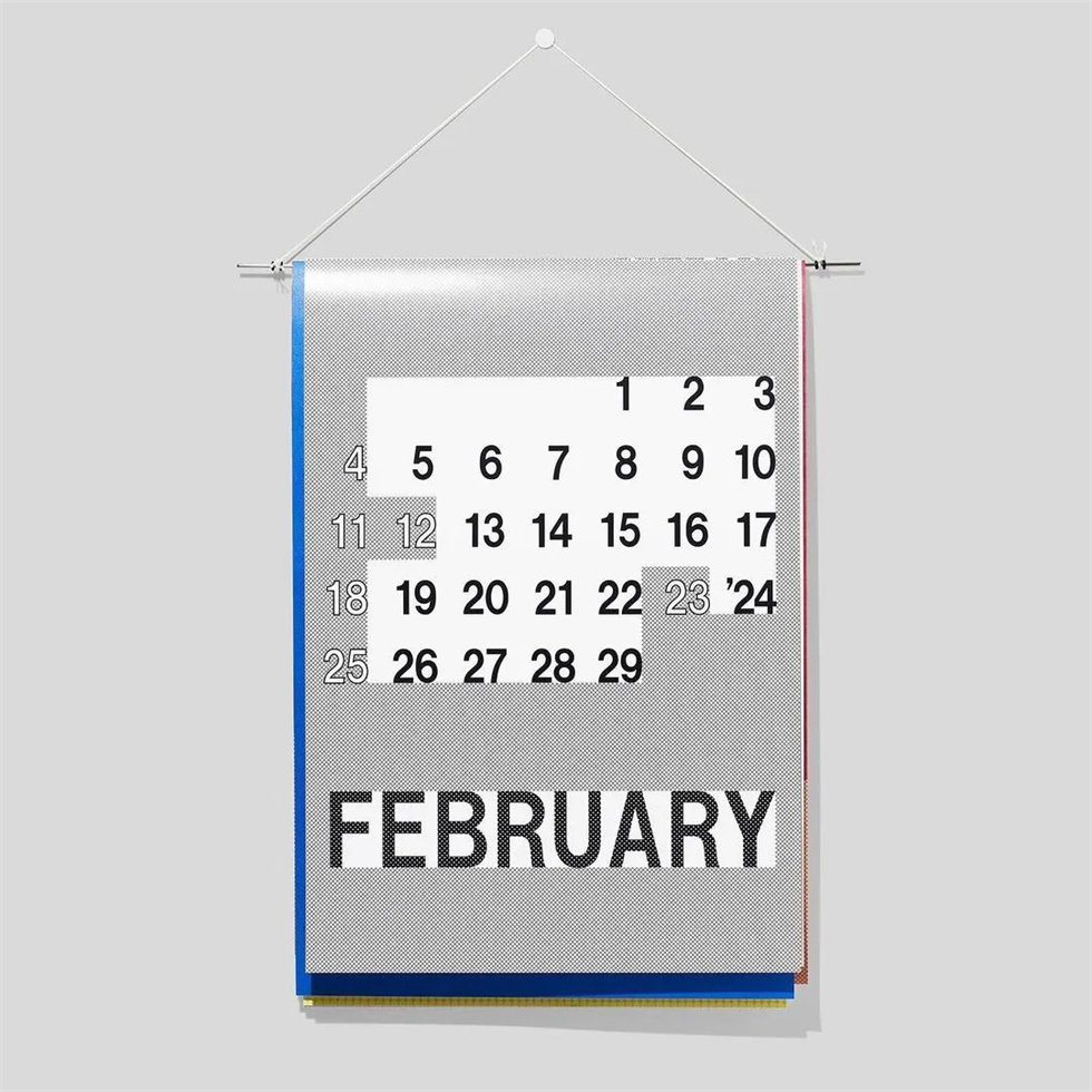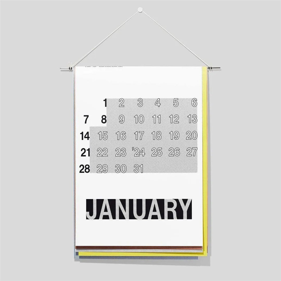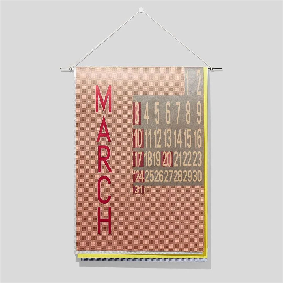 由日本設計師渡邊良重與植原亮輔合作創立的設計師獨立品牌D-BROS,每年都會推出幾款獨具代表性的日歷。植原亮輔的日歷設計一向沒有規則,他傾向于塑造“模糊地想象未來”的理念。這款由植原亮輔設計的2024年掛墻日歷“TOMORROWS”(明天)由6頁不同尺寸、不同紋理的紙張組成,營造出獨具一格的趣味感。