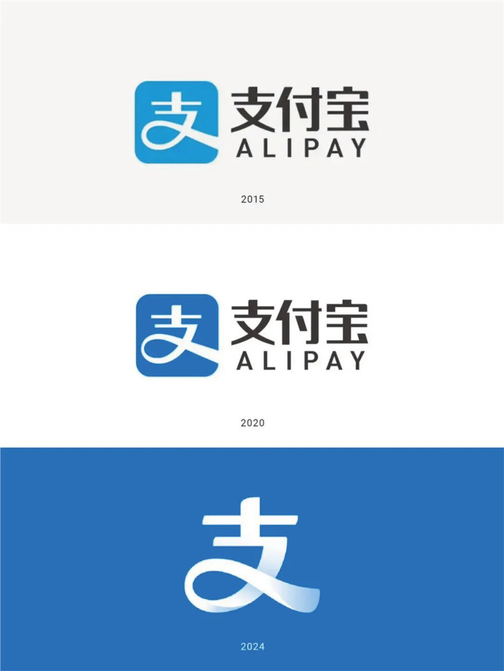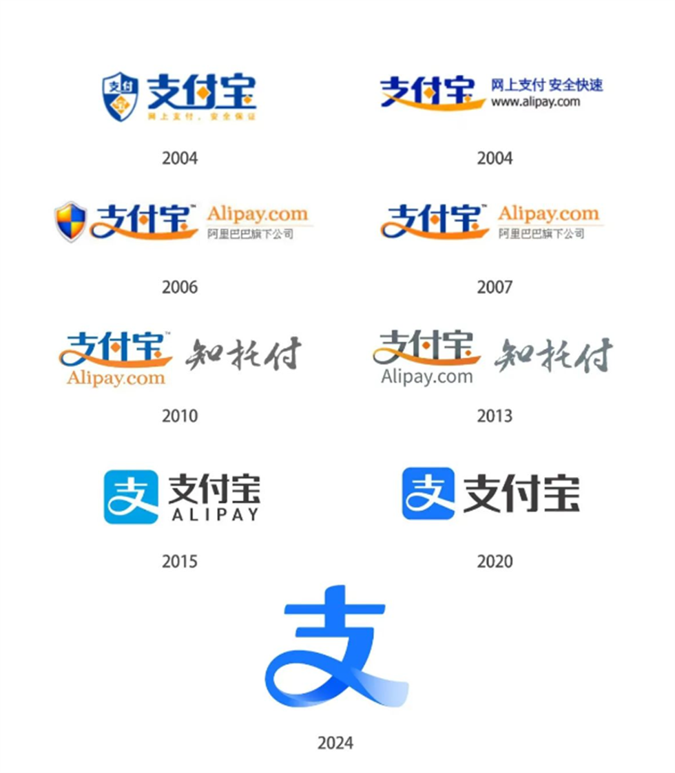 這是支付寶時隔4年再次更換設計新Logo,上一次是2020年,附:2004-2024支付寶LOGO發展史