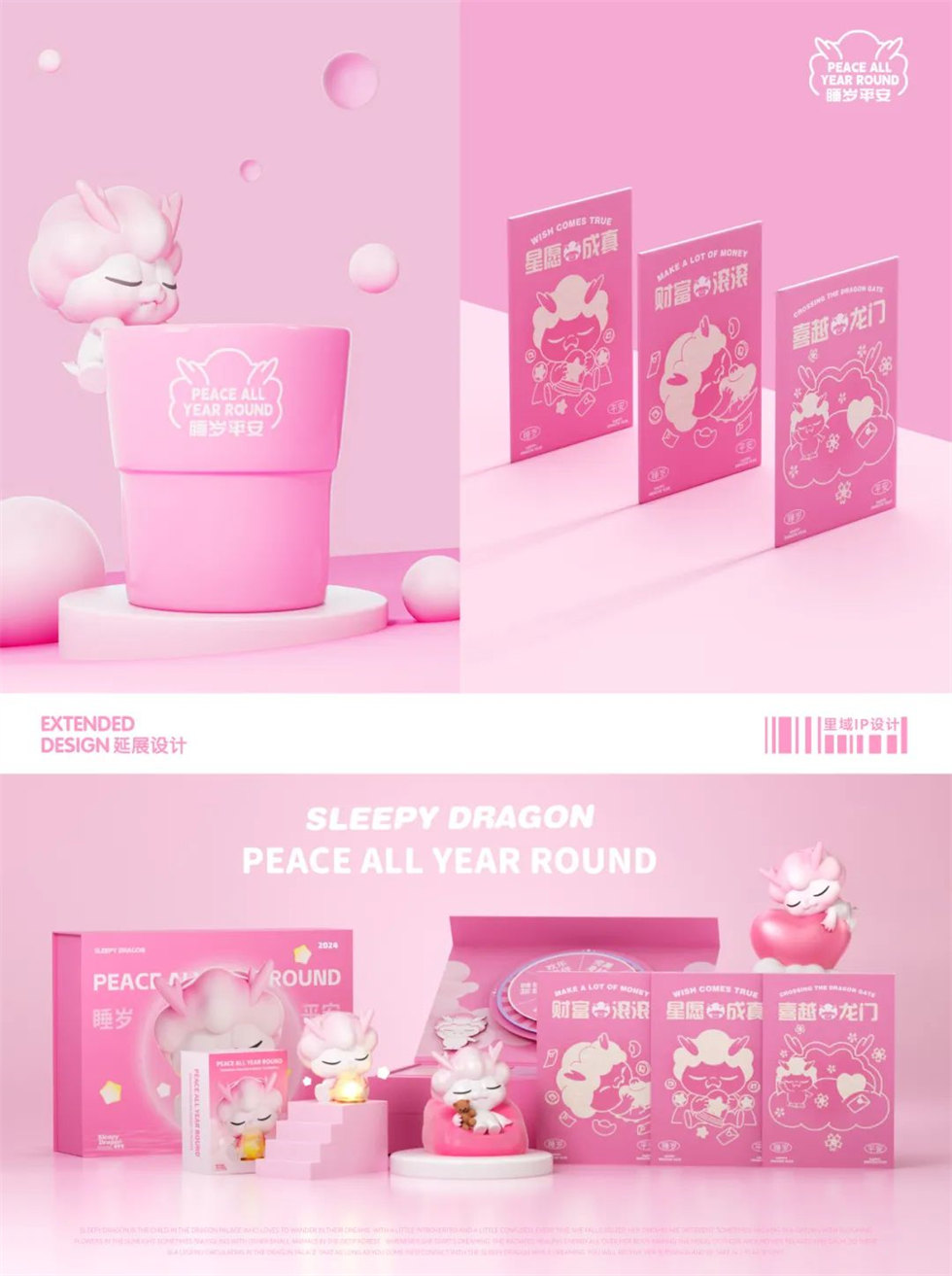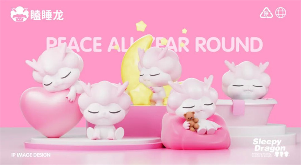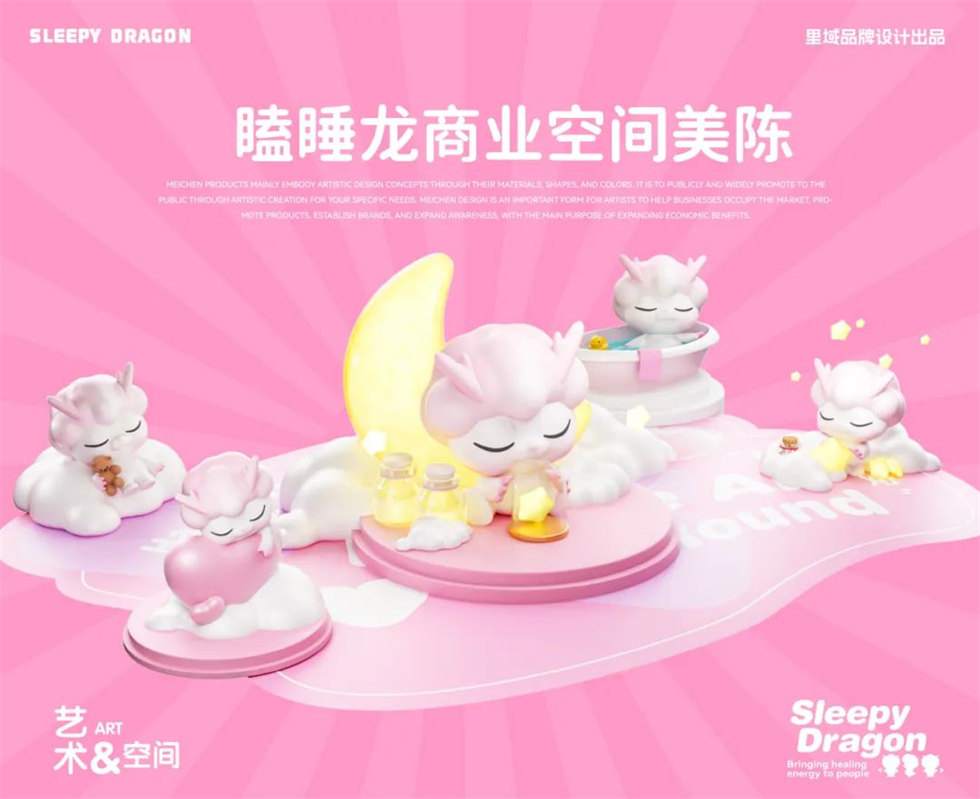 “睡歲平安”,用來表達現在打工人的心聲真的再適合不過了。粉白的瞌睡龍IP形象設計更是讓人驚艷,相信放在商場,絕對吸引無數女生前來打卡!
