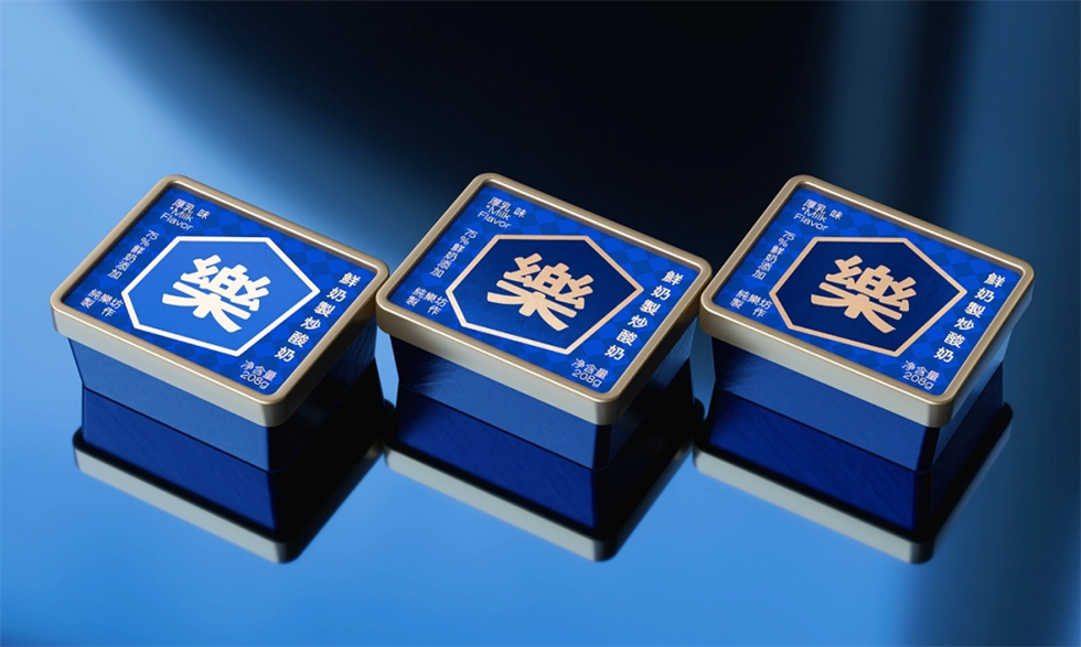 在此次設(shè)計團隊為純樂坊品牌鮮奶制炒酸奶產(chǎn)品包裝設(shè)計項目中,選擇以炒酸奶的幾何形態(tài)作為品牌的重要識別設(shè)計符號,用動態(tài)的形狀構(gòu)建酸奶包裝設(shè)計視覺的識別體系,并用最精簡的形狀、色彩、版面為純樂坊打造了獨屬于自己的高端中式風(fēng)格酸奶包裝設(shè)計形象,助力品牌與用戶的情感溝通。