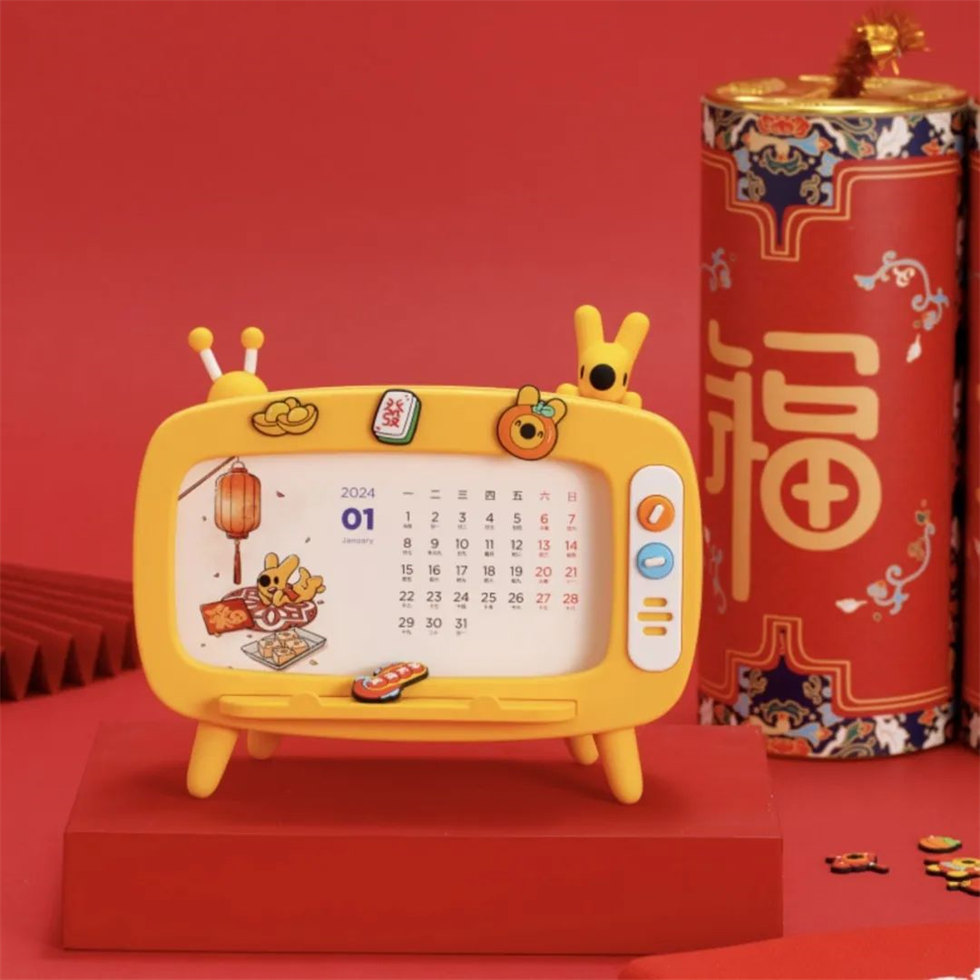 美團新年盲盒臺歷禮盒包裝設計不僅環保實用,每份臺歷禮盒還包含一筆善款,用于捐贈美團鄉村兒童操場。既是臺歷也能做手機支架的小電視外框,頂部也可做收納筆框。超萌DIY貼飾隨機出現,袋鼠團團、龍年團團祝福及隨機好運元素,diy獨一份的美好~