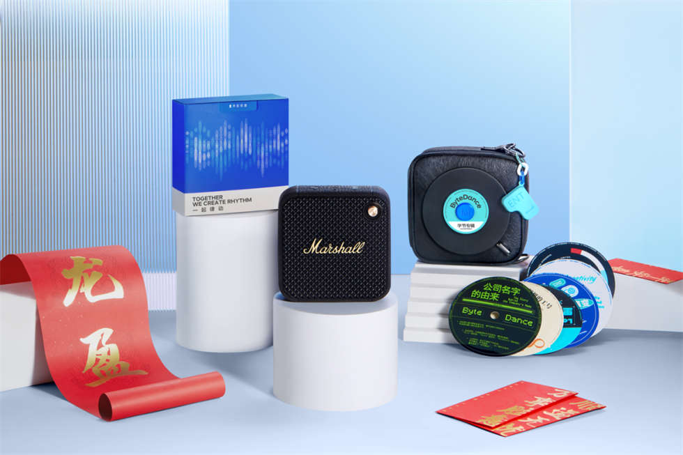 2024年字節跳動新年禮盒包裝設計主題為“TOGETHER WE CREATE RHYTHM 一起律動”。以音符為主線,串聯起業務、文化和禮品,新的一年跟隨字節一起律動~