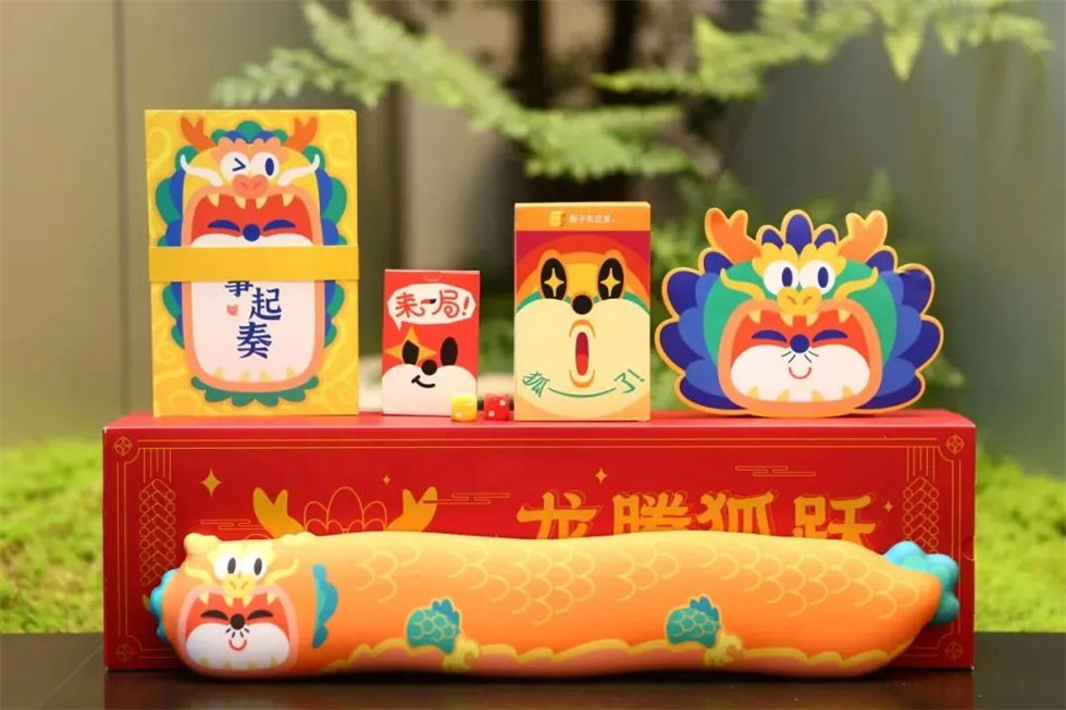 搜狐吉祥物狐言言帶來狐廠2024龍年新年禮盒包裝設計“龍騰狐躍”,一本龍狐年刊奏折在手,盡覽狐廠舊歲精華;慵懶的狐龍,歪歪扭扭的造型,是柔軟觸感貼合手腕曲線的狐龍腕墊。
