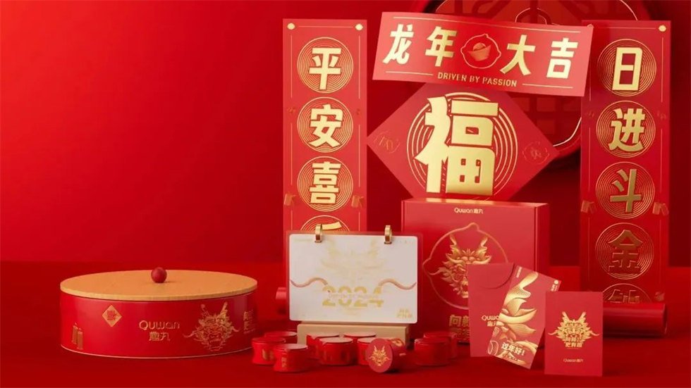 西瓜視頻2024年新年禮盒包裝設計主題為「心心向龍」,新的一年,快樂向上,心心向龍!
