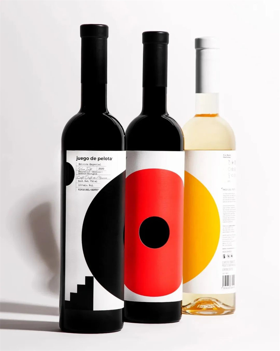 在極簡主義和動態設計之間有一條細微的界限,Cadena concept抓住了兩者的交叉點。Juego de Pelota的酒瓶子設計采用了超大的幾何形狀,簡單的顏色組合和白色空間的巧妙使用。然而,Juego de Pelota酒瓶設計雖然概念很簡單,但大膽的形狀和全息箔的使用為空間增添了紋理和智慧,通常采取極簡主義或動態路線,很少將兩者混合。