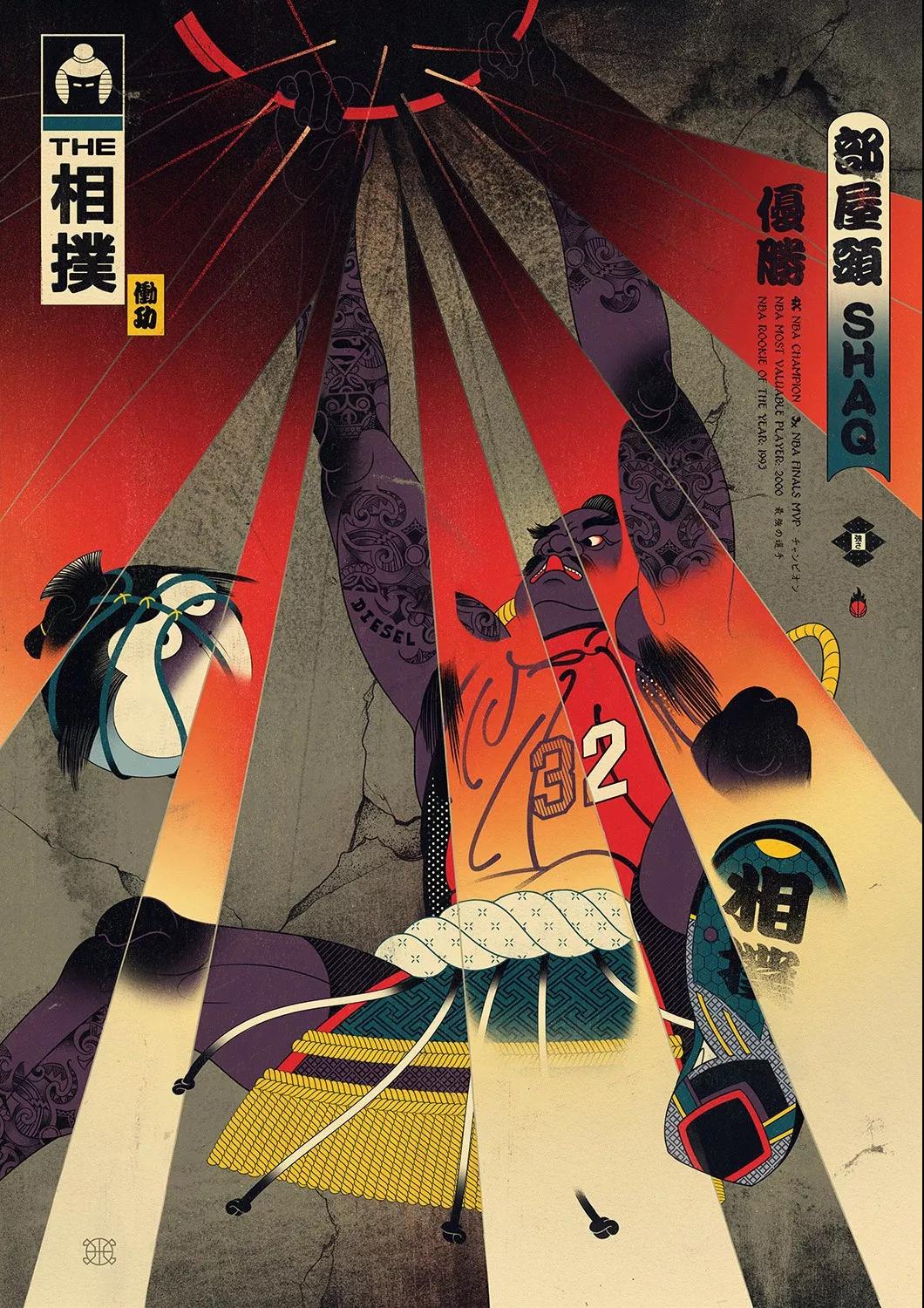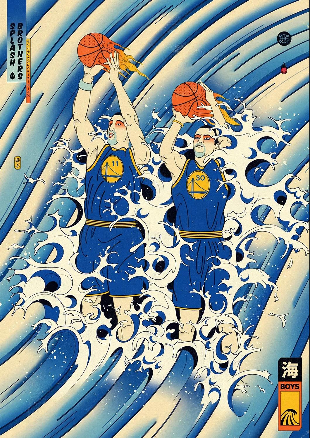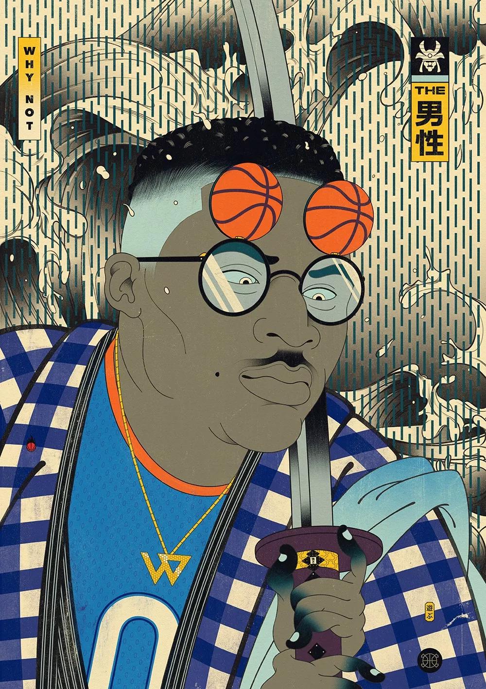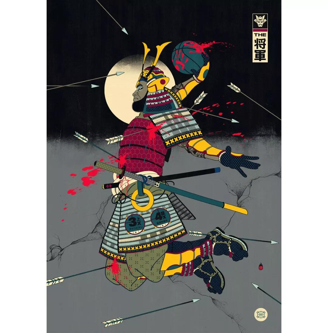 澳大利亞的藝術總監Andrew Archer,出于對日本文化與NBA的喜愛,畫作中,他巧妙地將籃球元素運用在藝妓的傳統和服上,又或者是直接讓他們穿上球衣,就連后頭背景的小細節沒放過,除此之外,Andrew更會將球星以浮世繪方式呈現,包括了Stephen Curry、Klay Thompson、LeBron James、Russell Westbrook,還有剛完成球衣退役儀式的黑曼巴Kobe Bryant。