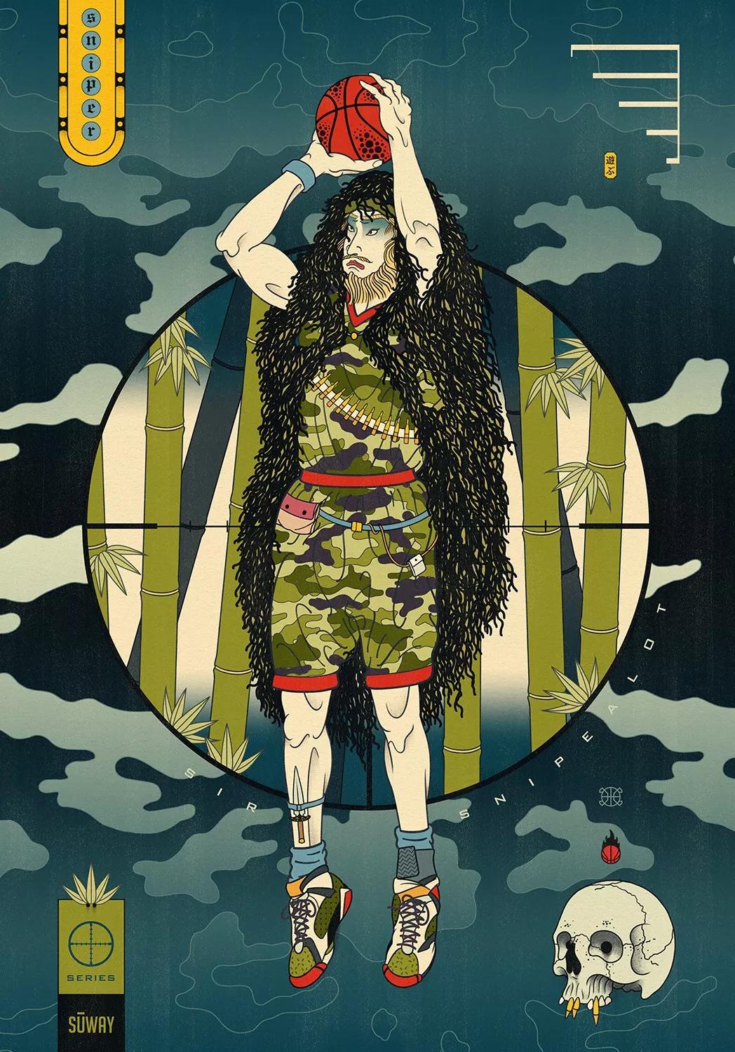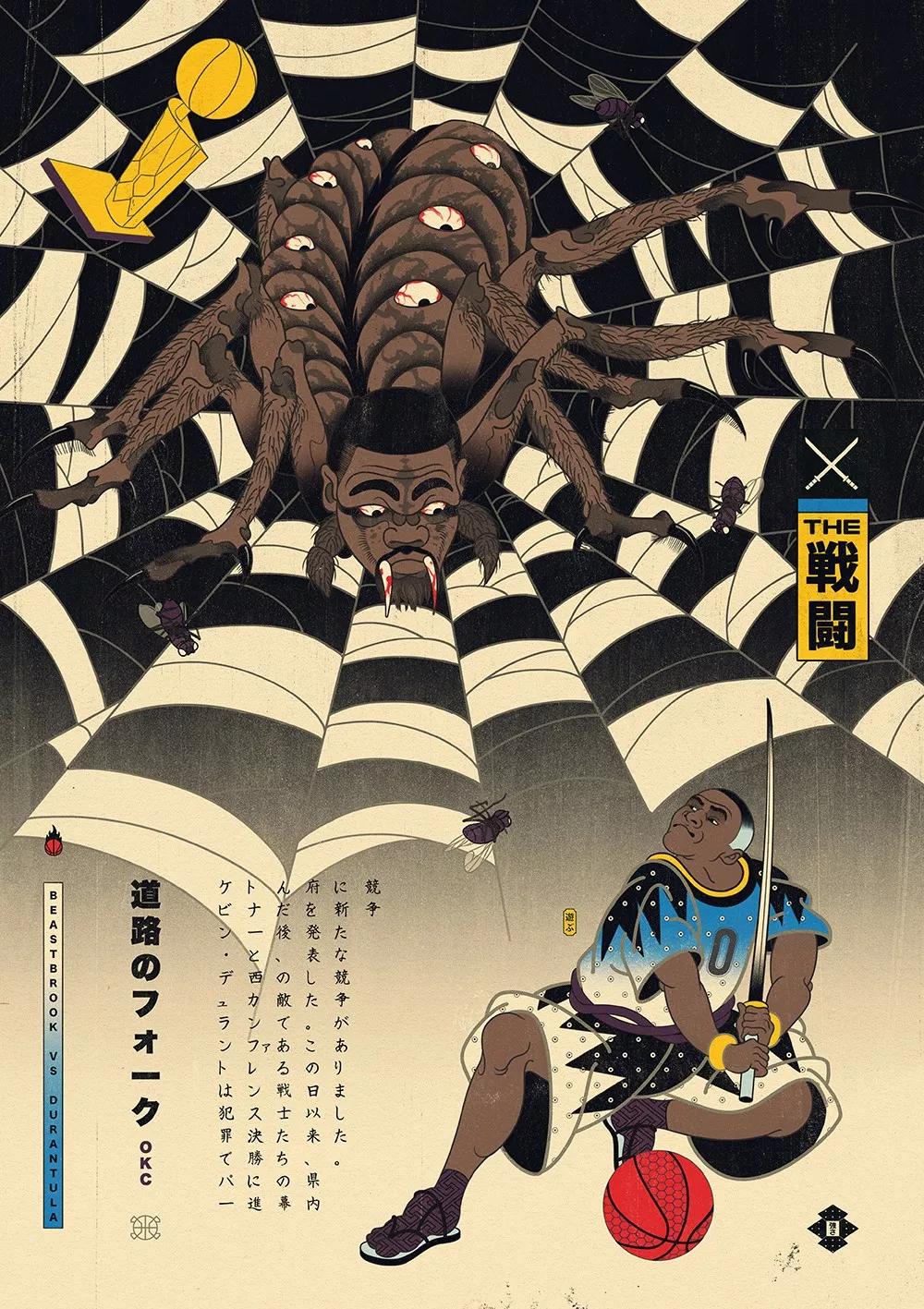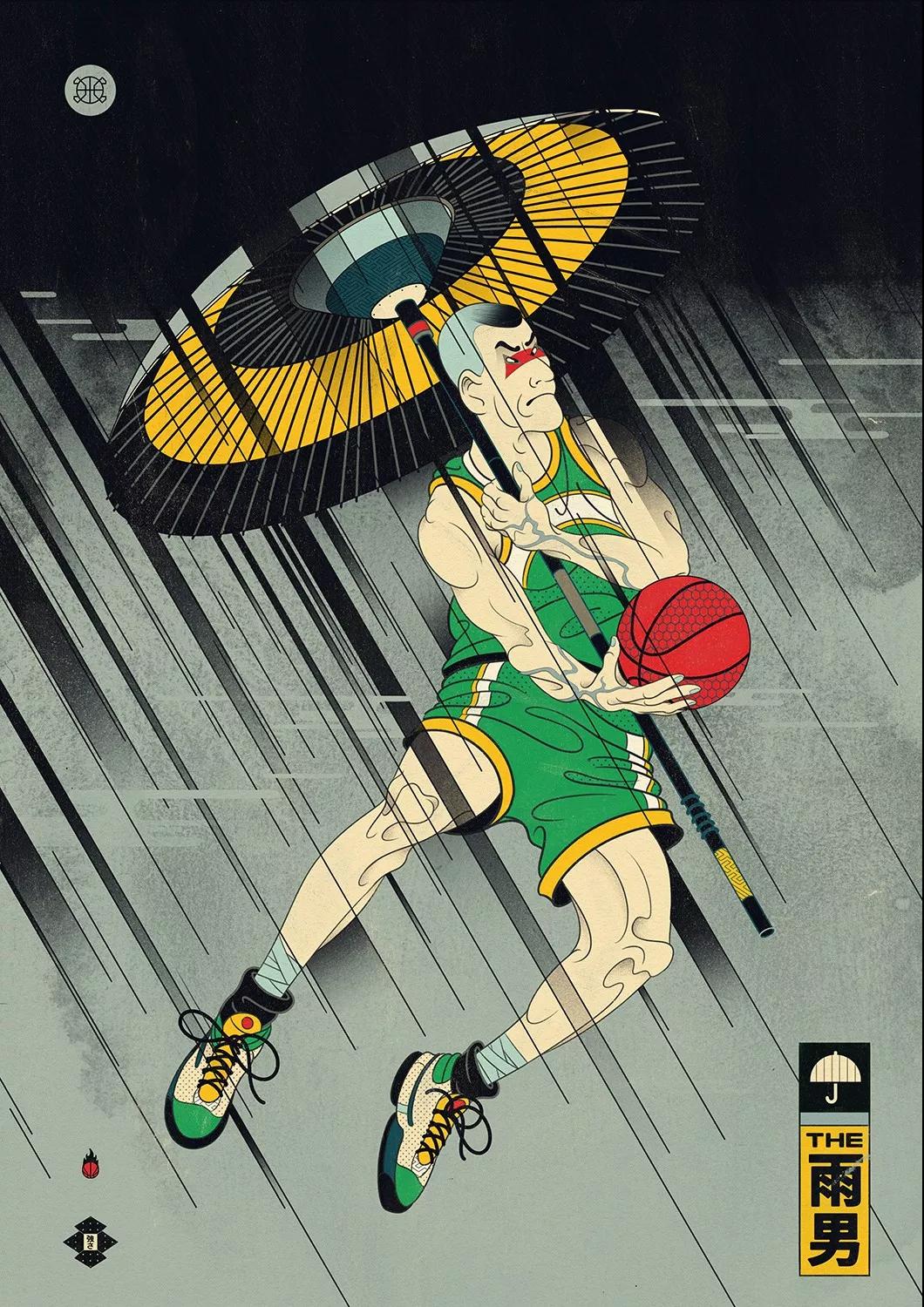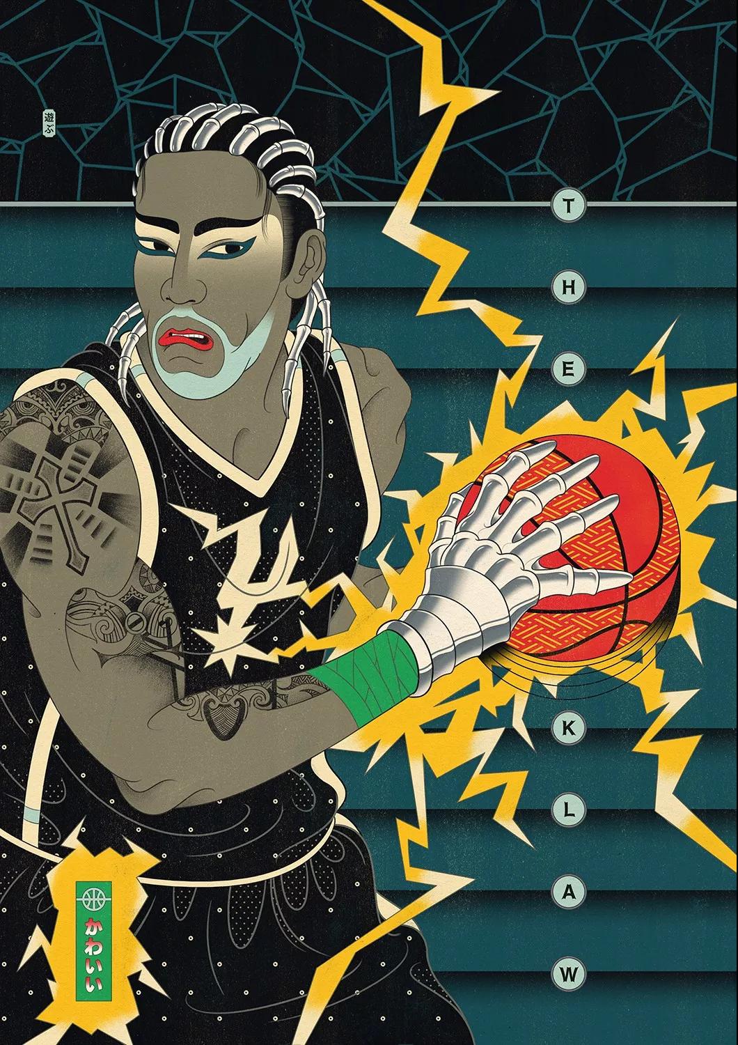 澳大利亞的藝術總監Andrew Archer,出于對日本文化與NBA的喜愛,畫作中,他巧妙地將籃球元素運用在藝妓的傳統和服上,又或者是直接讓他們穿上球衣,就連后頭背景的小細節沒放過,除此之外,Andrew更會將球星以浮世繪方式呈現,包括了Stephen Curry、Klay Thompson、LeBron James、Russell Westbrook,還有剛完成球衣退役儀式的黑曼巴Kobe Bryant。