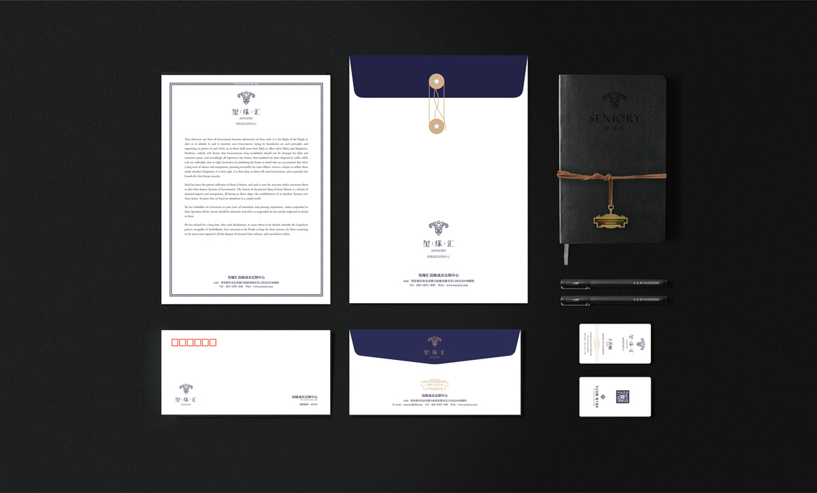 在貴族階層家徽作為專屬視覺圖案,是榮耀與血統的象征,代表著尊貴與榮耀。 璽緣匯標志的創意來源于歐式教堂建筑藝術元素及家徽符號。由璽緣匯英文seniory的首字母S交融而成,在配以巴洛克的藝術表現風格。以法式優雅藍為主色,代表著永恒、浪漫與美麗,演繹出神秘優雅的高貴格調。標志設計融入了教堂建筑的藝術,法式的典雅及皇族徽章的榮耀,強烈的傳遞出高雅矜貴的藝術氣息。