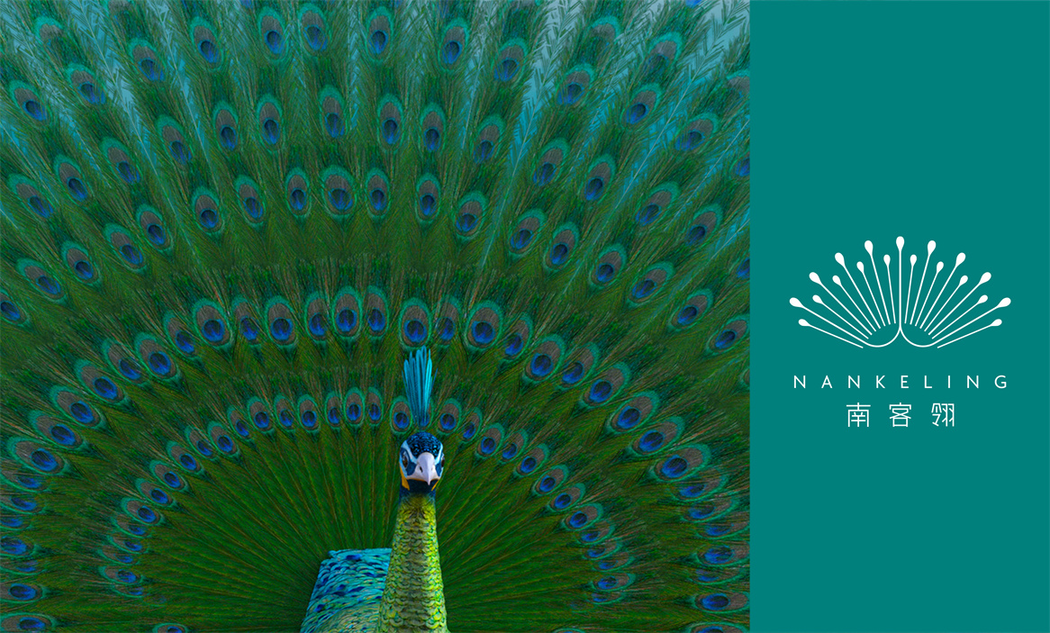 孔雀又名越鳥、南客,被視為“百鳥之王”,是最美麗的觀賞鳥,是吉祥、善良、美麗、華貴的象征。南客翎即孔雀翎,其品牌及意義也取于此。孔雀開屏,五彩繽紛、絢麗奪目,代表一種美和美好的象征。南客翎的品牌形象設計表達巧妙的抓取了這一美好時刻,加以設計提煉,取其形而鍛其神,簡約而不簡單,形象而直觀的表達了孔雀開屏之美。